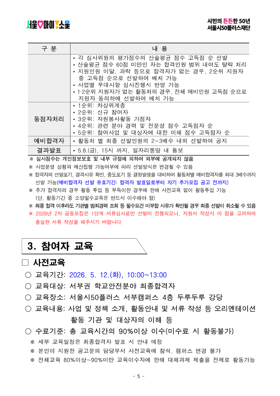 3. 참여자 선발심사는  1, 2 으로 진행3순위 활동처는 참고용