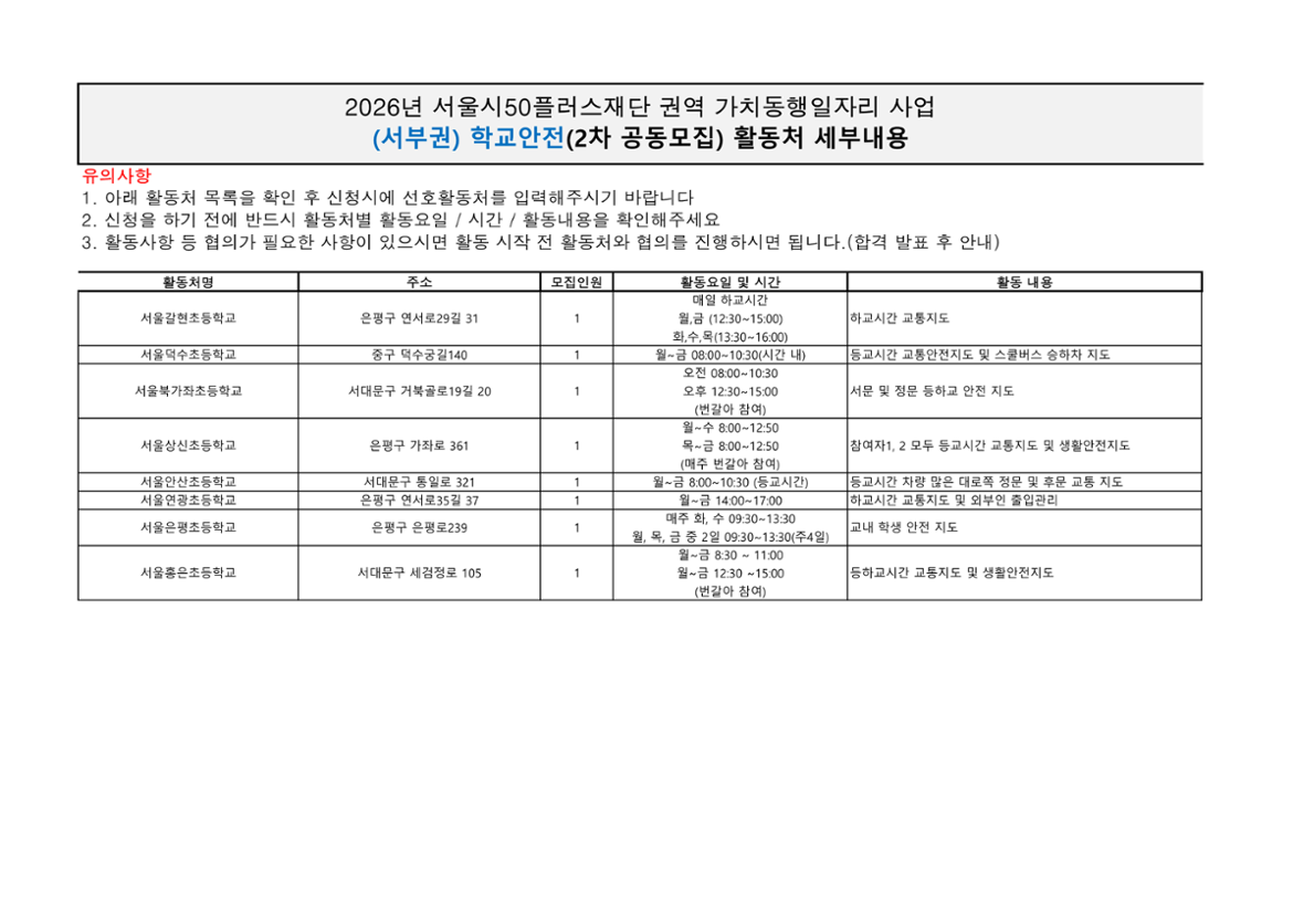 서울시50플러스재단 서부권 학교안전(2차 공동모집)