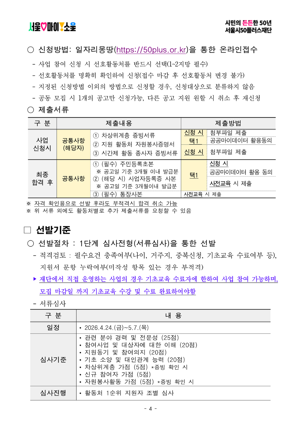 1. 본 모집공고는 참여자 선발이 서류심사로만 진행됩니다.