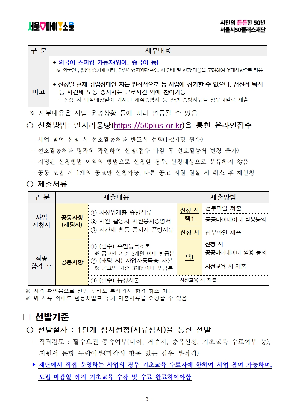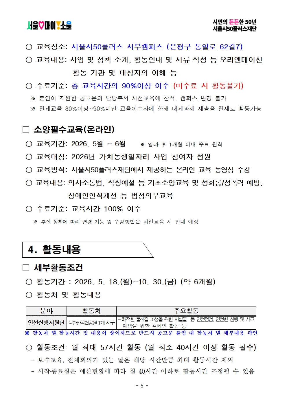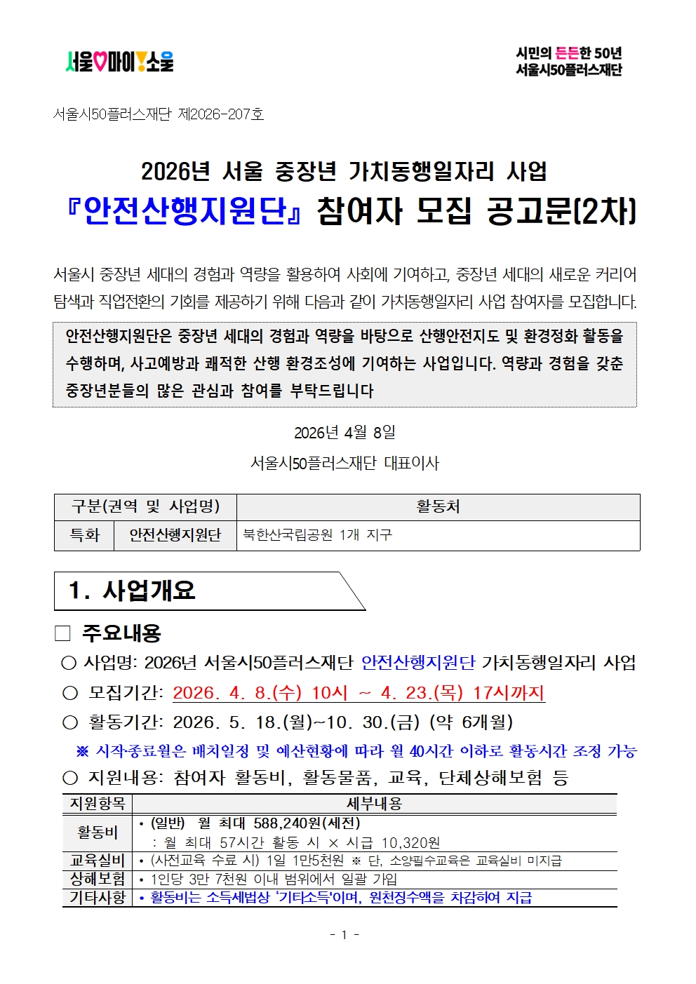 서울시50플러스재단 안전산행지원단(2차 공동모집)