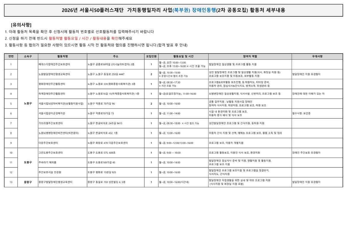 서울시50플러스재단 북부권 장애인동행(2차 공동모집)