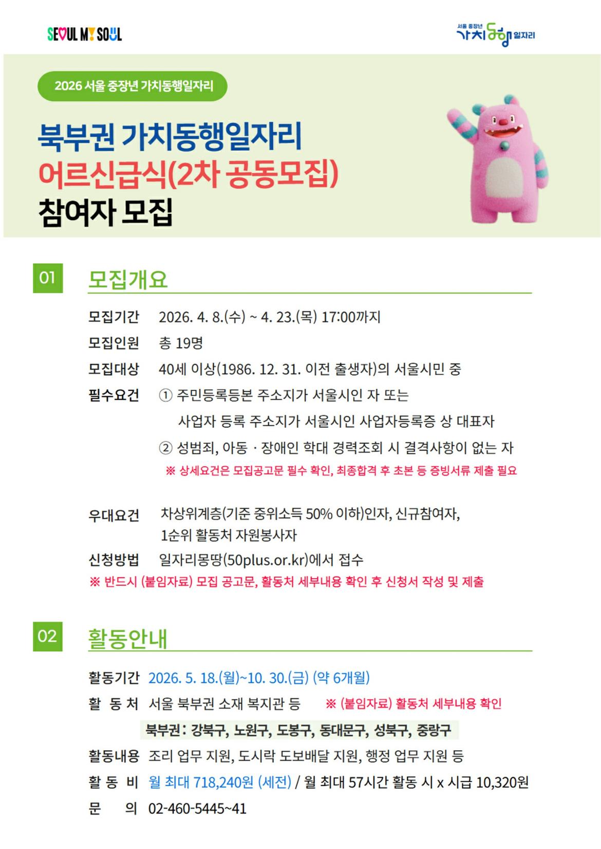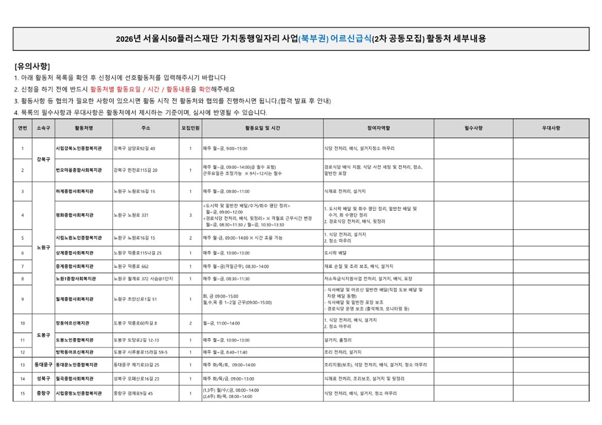 가치동행일자리 북부권 어르신급식지원 2차 공동모집마감 D-14