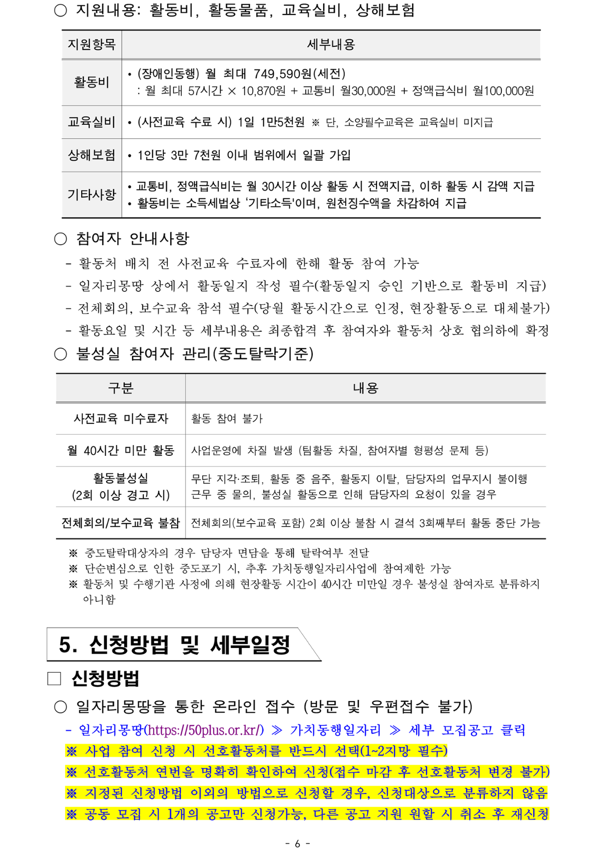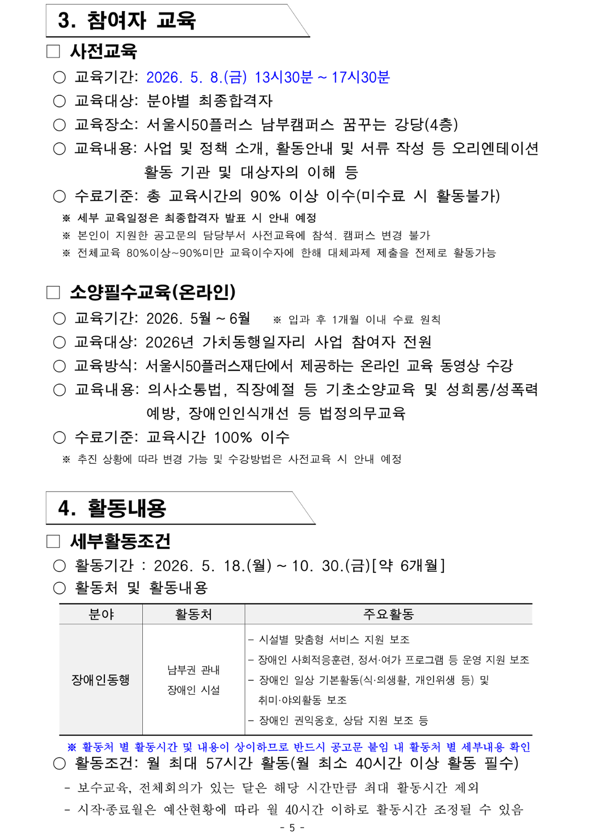 1. 가치동행일자리 기초교육 미수료시 활동불가( 4.23 전 반드시 수료 필수)