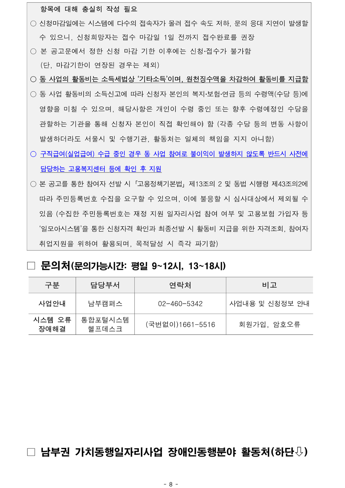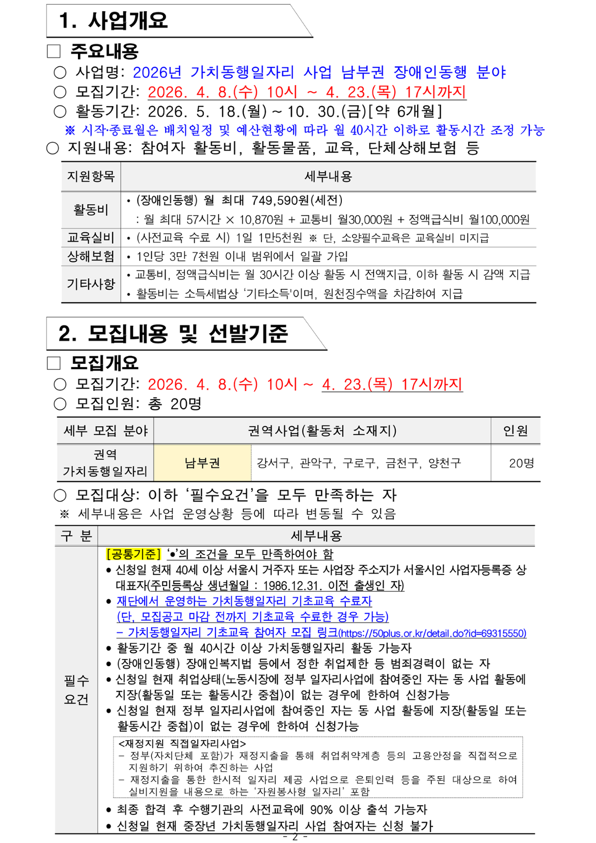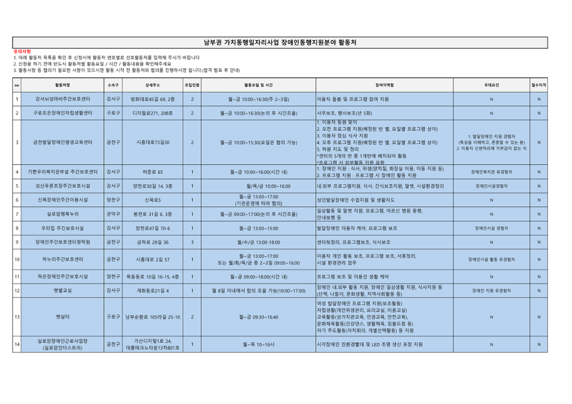 가치동행일자리 남부권 장애인동행 2차 공동모집마감 D-14