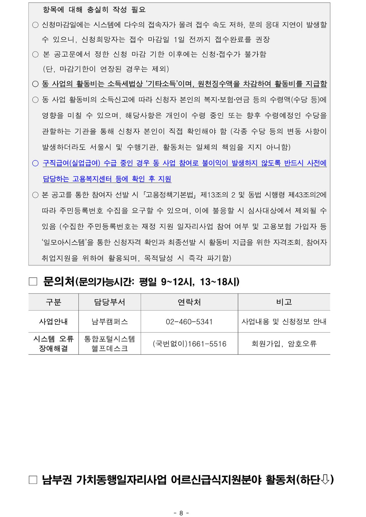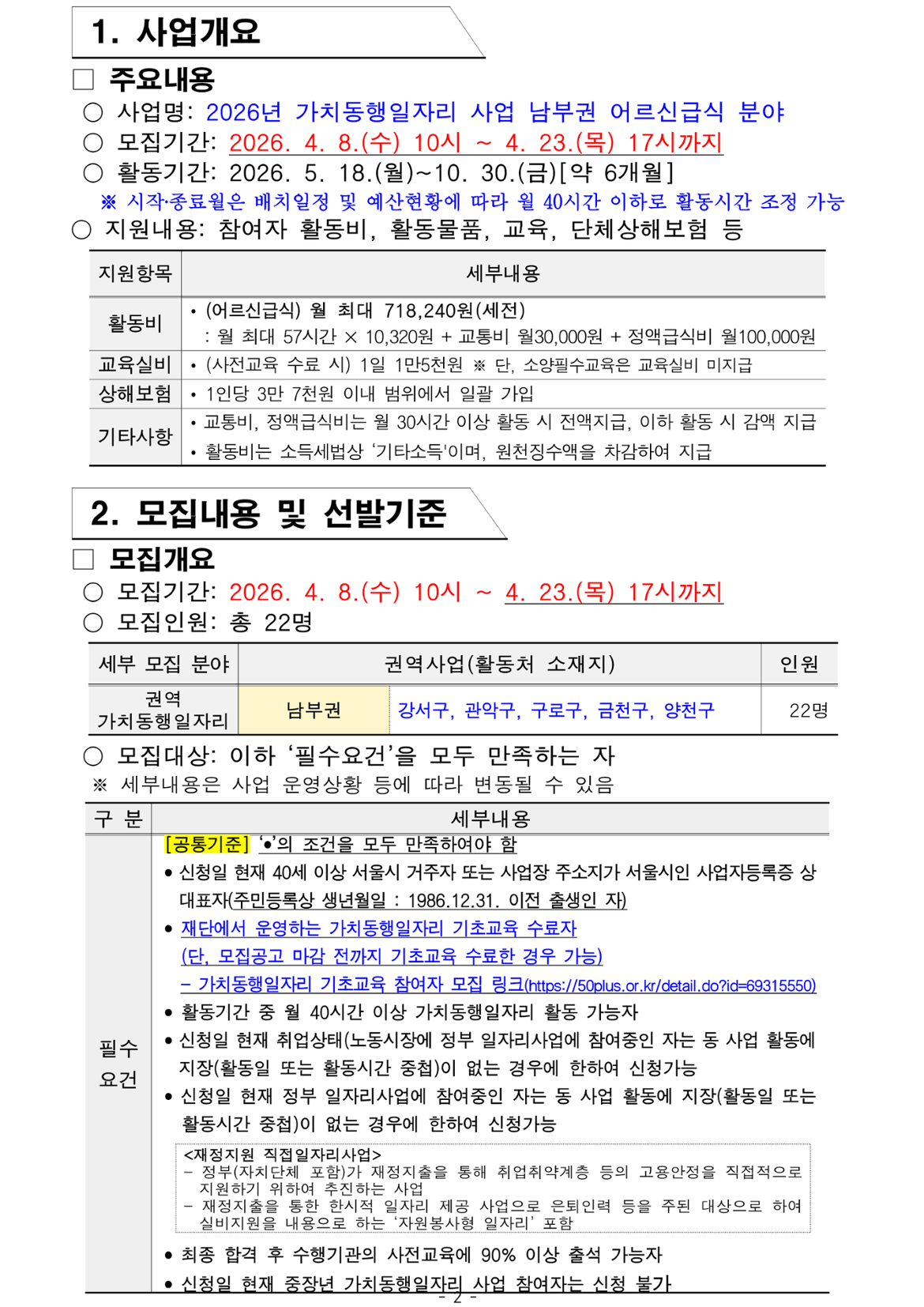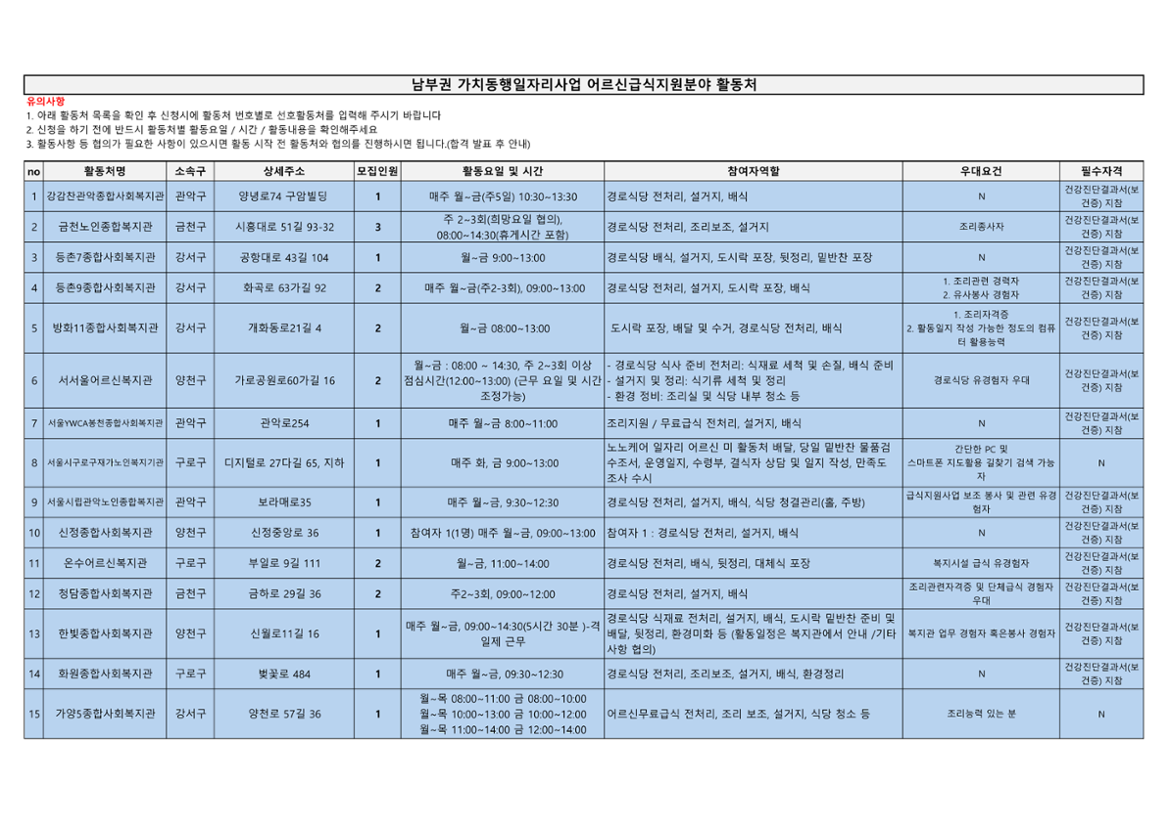 가치동행일자리 남부권 어르신급식지원 2차 공동모집마감 D-14