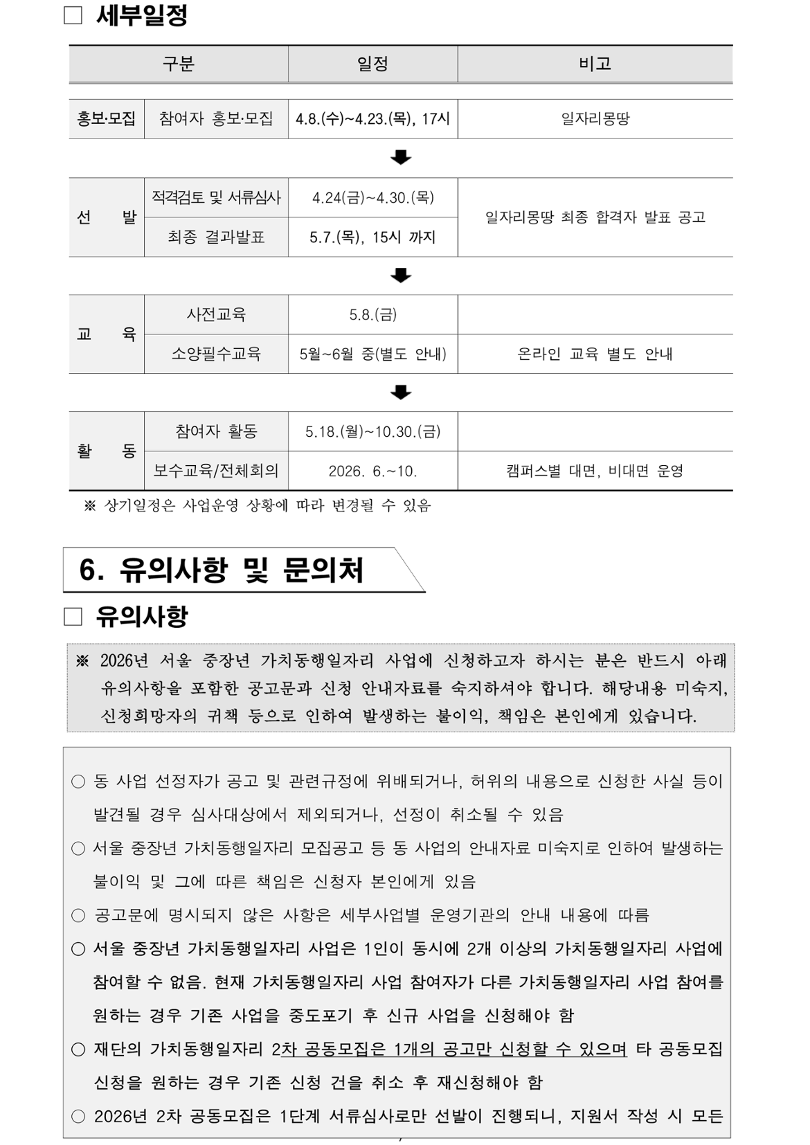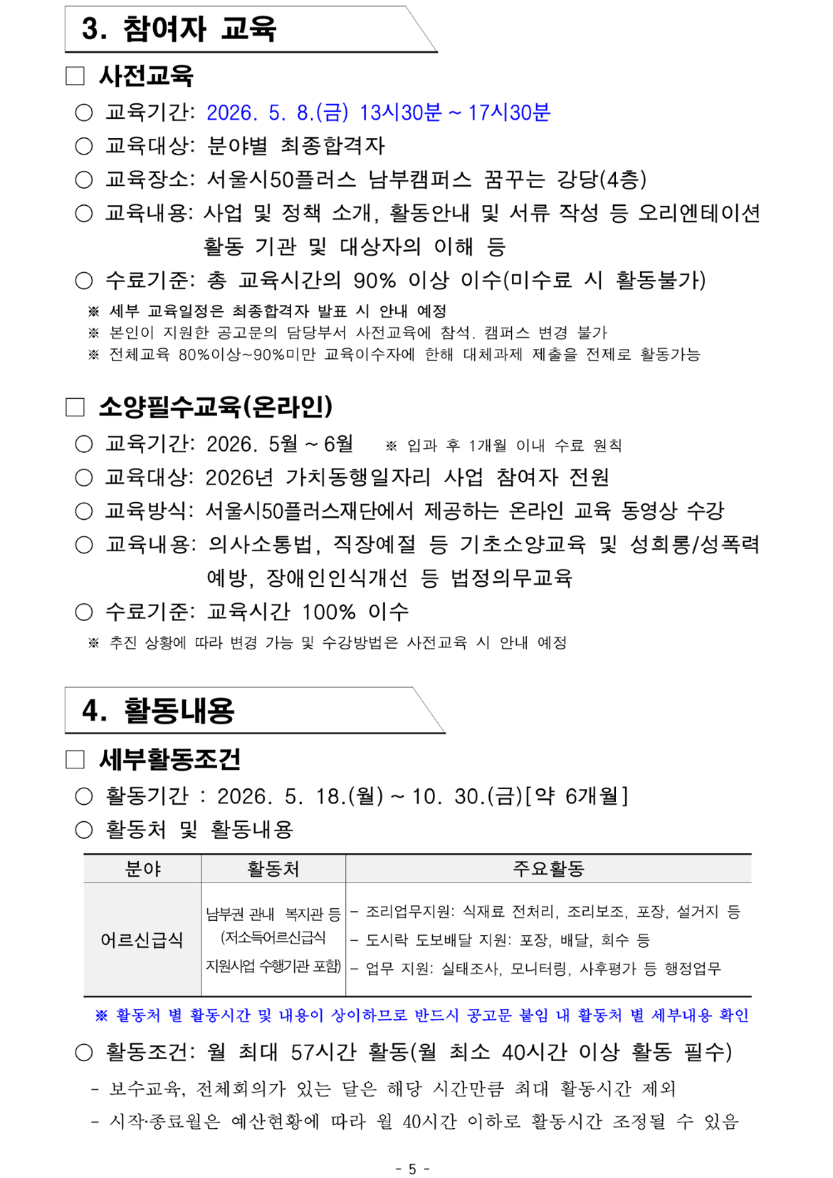 1. 가치동행일자리 기초교육 미수료시 활동불가( 4.23 전 반드시 수료 필수)