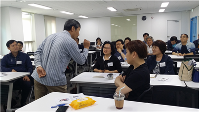 ▲ 50+인생학교 수업 중(정광필 학장과 학생)