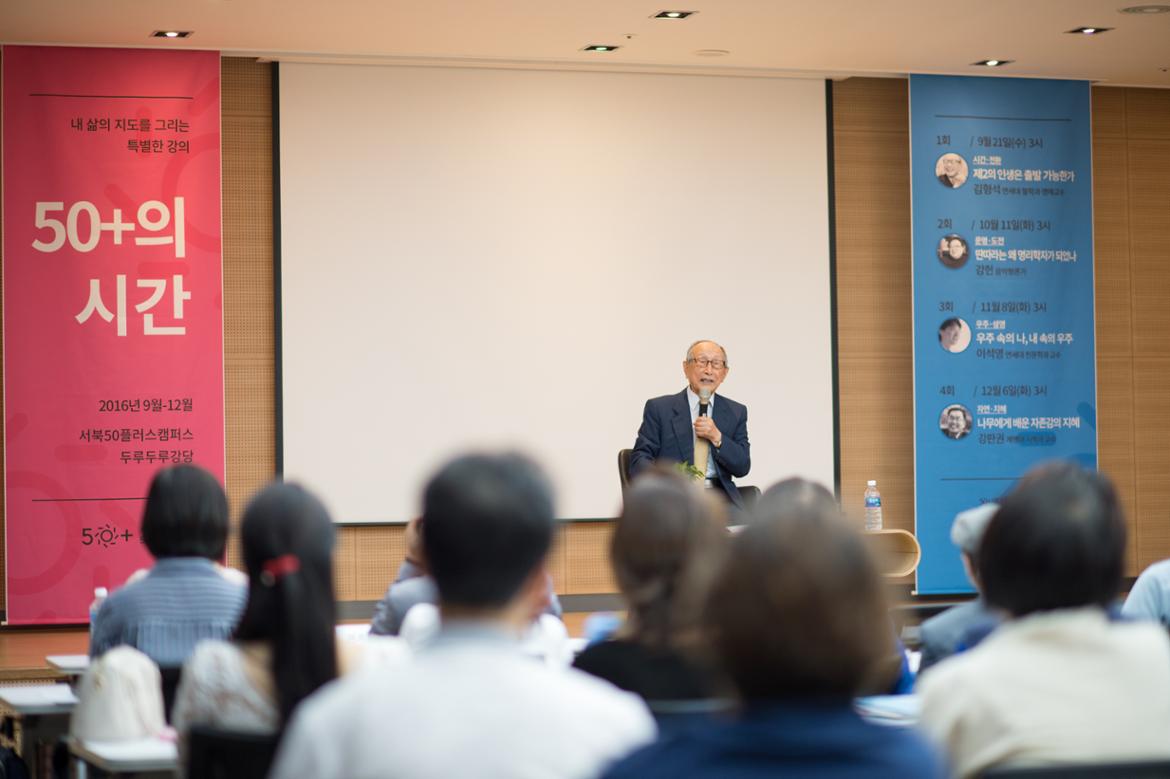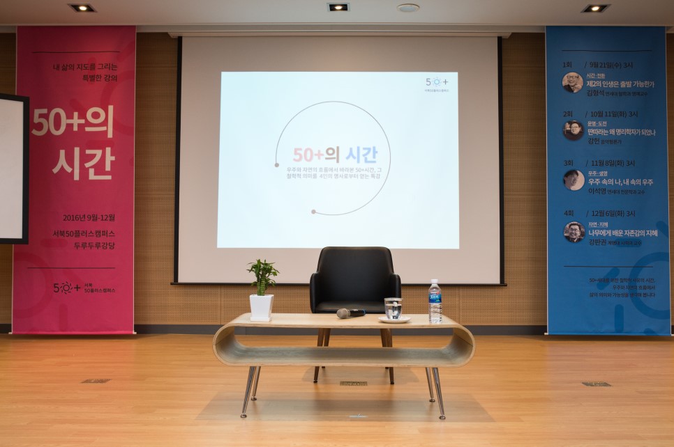 『서울시 50+재단』 산하 『서북 50+캠퍼스』에서 그에 대한 철학적 사유의 시간을 가져보자는 취지로 지난 9월 21일, 캠퍼스 4층 대강당에서 「50+의 시간」 특강을 개강했다.