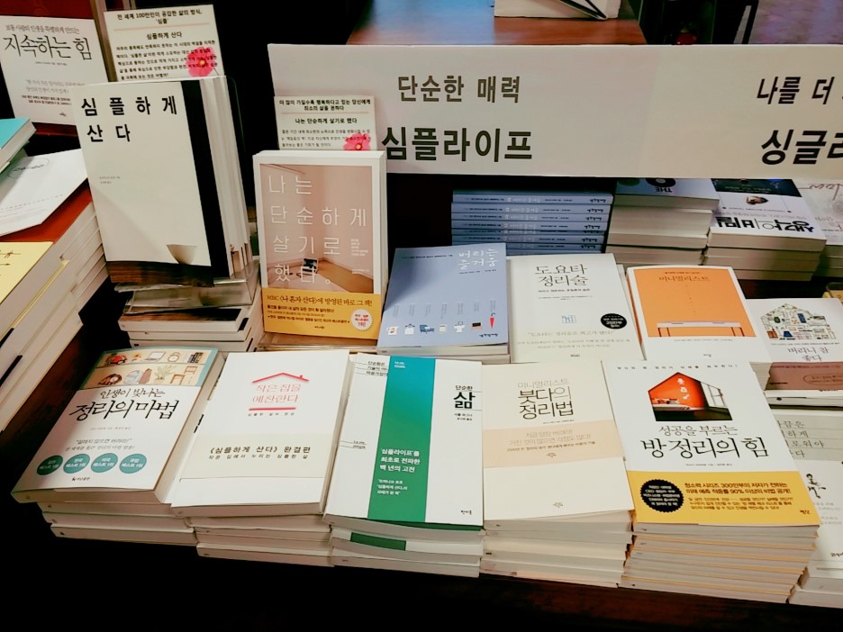 단순한 삶의 미학을 말하는 미니멀리즘 관련 도서들이 진열된 주요 서점가의 화제의 코너
