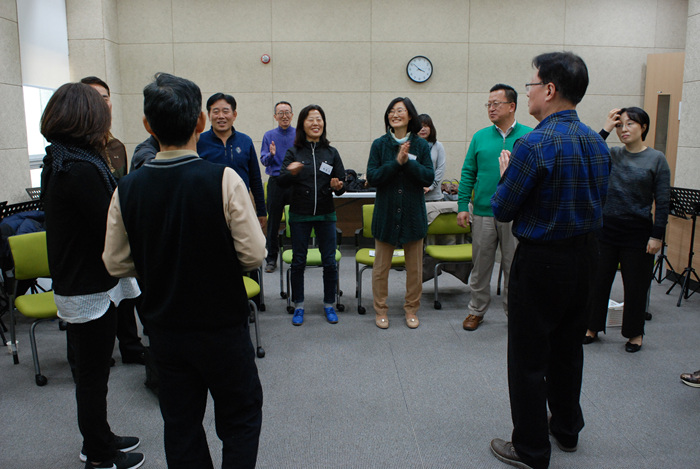 ‘내 몸을 제대로 알고 100세 시대를 건강하게 누리자’라는 취지로 결성되었다는 ‘몸사랑’ 커뮤니티의 활동은 조명진 대표(헬스디자인연구소장)의 강의 후 실습으로 진행되었다. 지난번 활동 시 다뤘던 양손 흔들기 운동을 다시 한 번 설명한 후에 1:1 실습이 이루어졌다. 이미 격의가 없어진 11명의 회원들이 거리낌 없이 실습에 참여하였다. 때로는 몸이 말을 듣지 않아 우스꽝스러운 자세를 보이는 회원이 있는가 하면 일찍이 다른 몸운동을 섭렵하여 한수 위의 기량을 뽐내는 회원도 있었다. 이런 것들은 아무런 문제가 되지 않았다. 활동하는 내내 땀과 즐거움이 가득했다. 화기애애한 활동이 계속된 가운데, 발표회를 위한 브레인스토밍을 끝으로 오늘의 커뮤니티활동은 종료되었다.