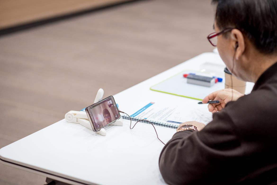 조그만 화면 너머로 열심히 소통하고 있는 선생님