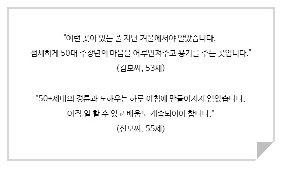 50대의 중장년층에게 새로운 출발점의 메카로 자리매김하고 있다.