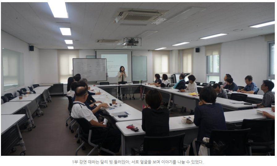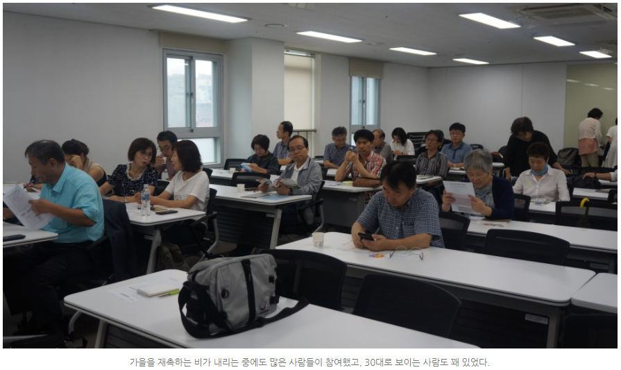 강의에 대한 소문을 듣고 온 듯 오순도순 서로 이야기를 나누다 누군가 우스갯소리로 “ 안 죽어서 큰일”이라고 말하자