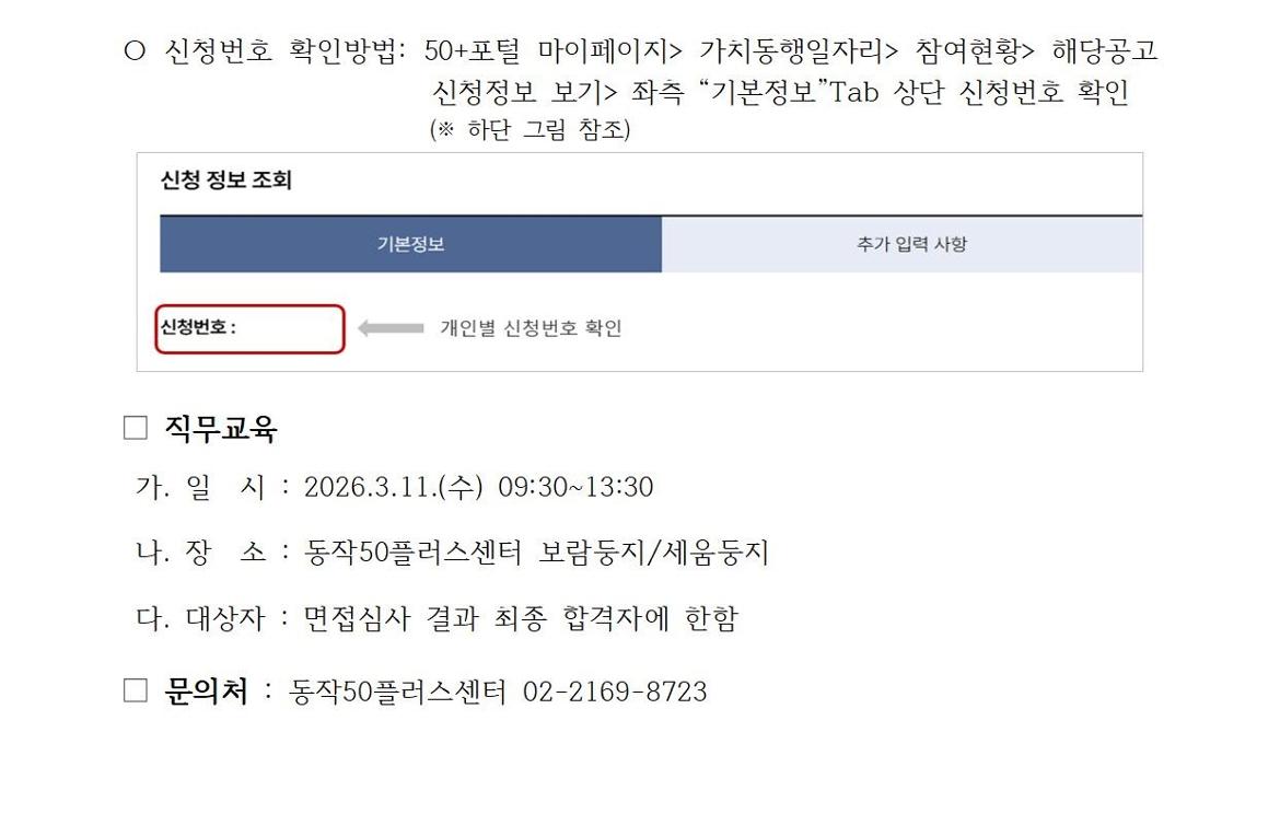 동작50플러스센터, 서울시 보람일자리, 합격자공고