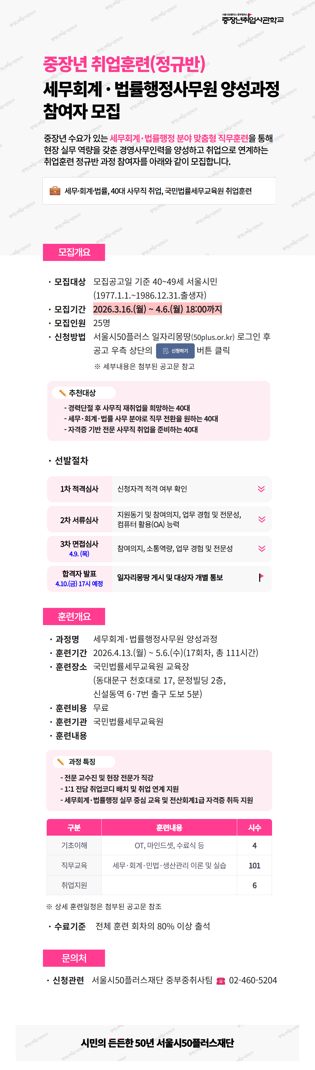 https://세무회계 법률행정사무원 양성과정 참여자 모집공고 페이지로 이동합니다