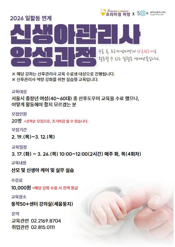 [취약계층돌봄학교] 신생아관리사 양성과정