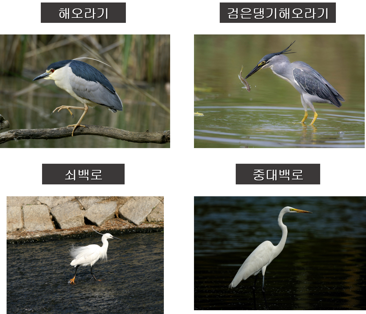 서울 하천에는 비슷하지만 조금씩 다른 새들도 있고