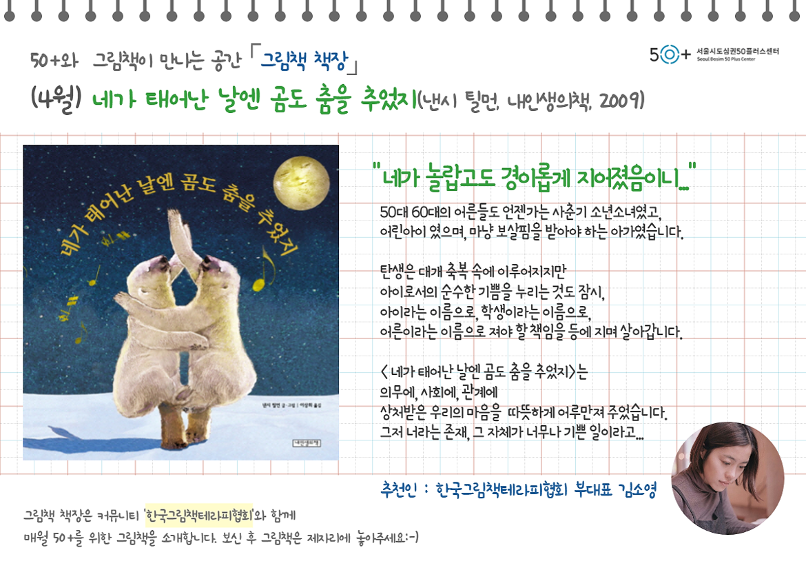 서울시도심권50플러센터 1층 활짝라운지 '그림책 책장'에 비치되어 누구나 볼 수 있습니다.