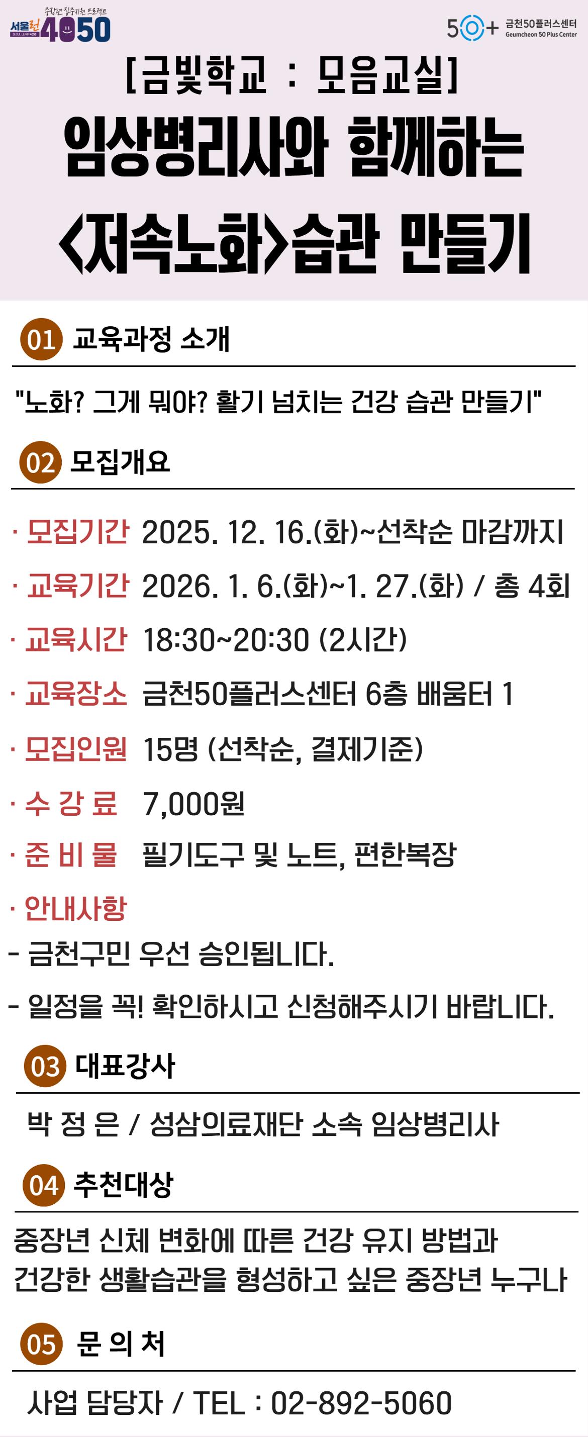 [금천][모음교실] 임상병리사와 함께하는 <저속노화> 습관 만들기마감 D-20