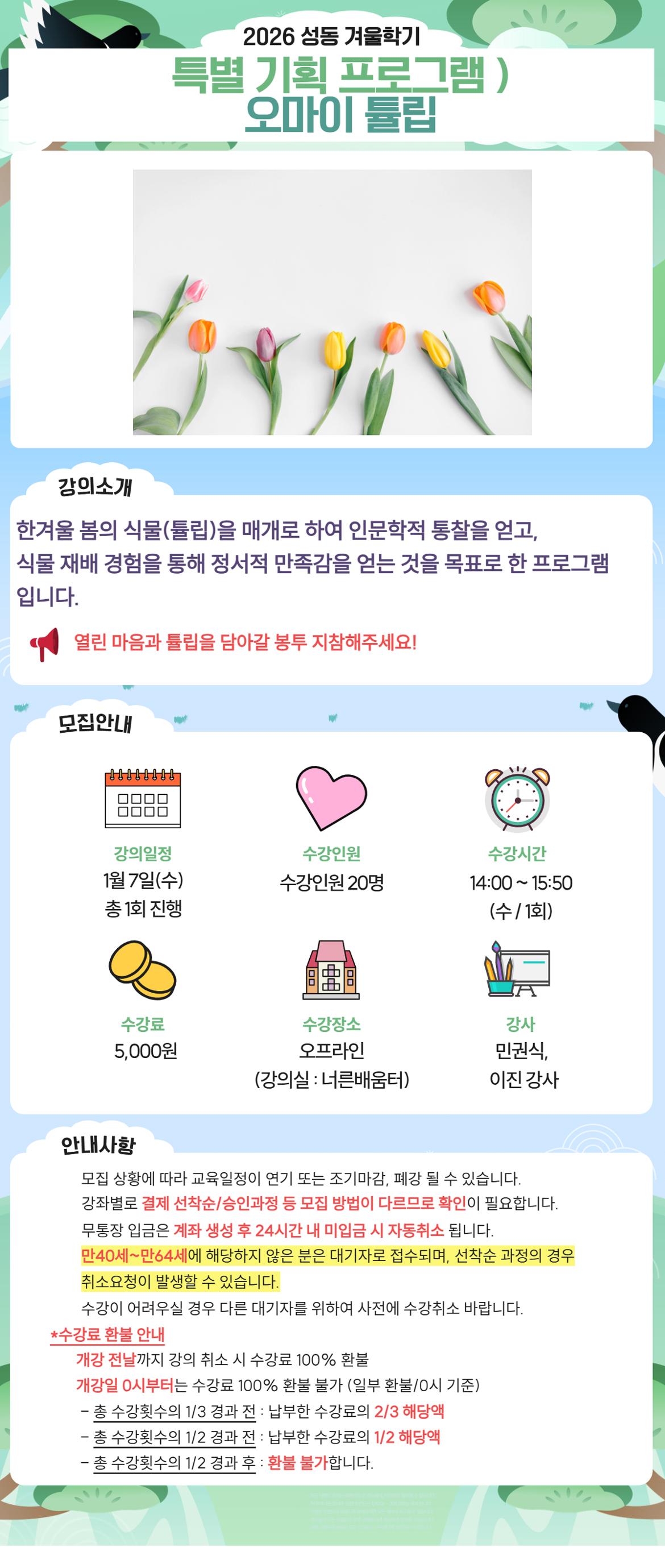[성동]특별기획 프로그램) 오마이 튤립(수, 14:00-15:50)마감 D-21