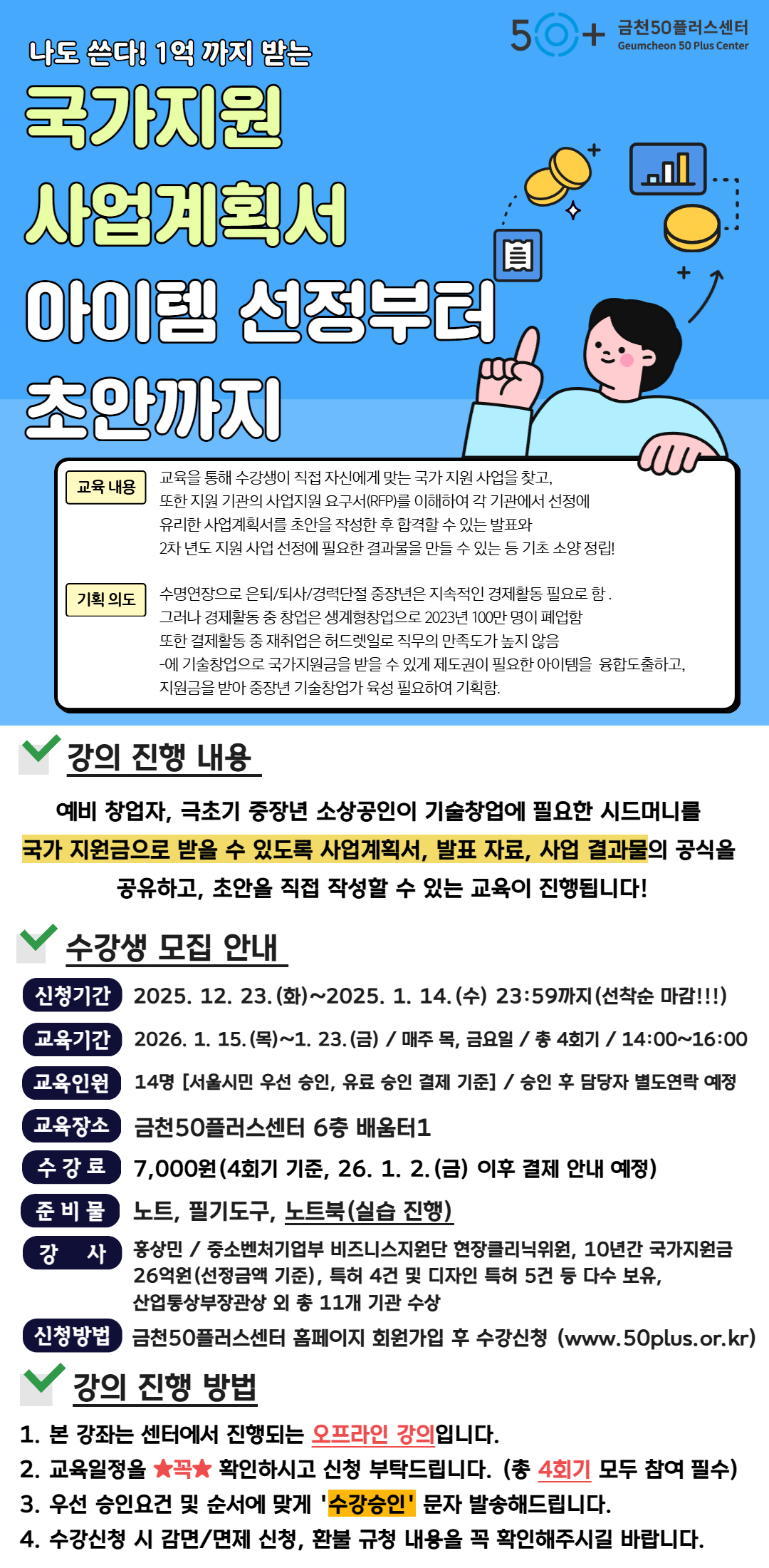 [금천][모음교실] 나도 쓴다. 1억까지 받는 국가지원사업계획서! - 아이템선정부터 초안 작성까지마감 D-20