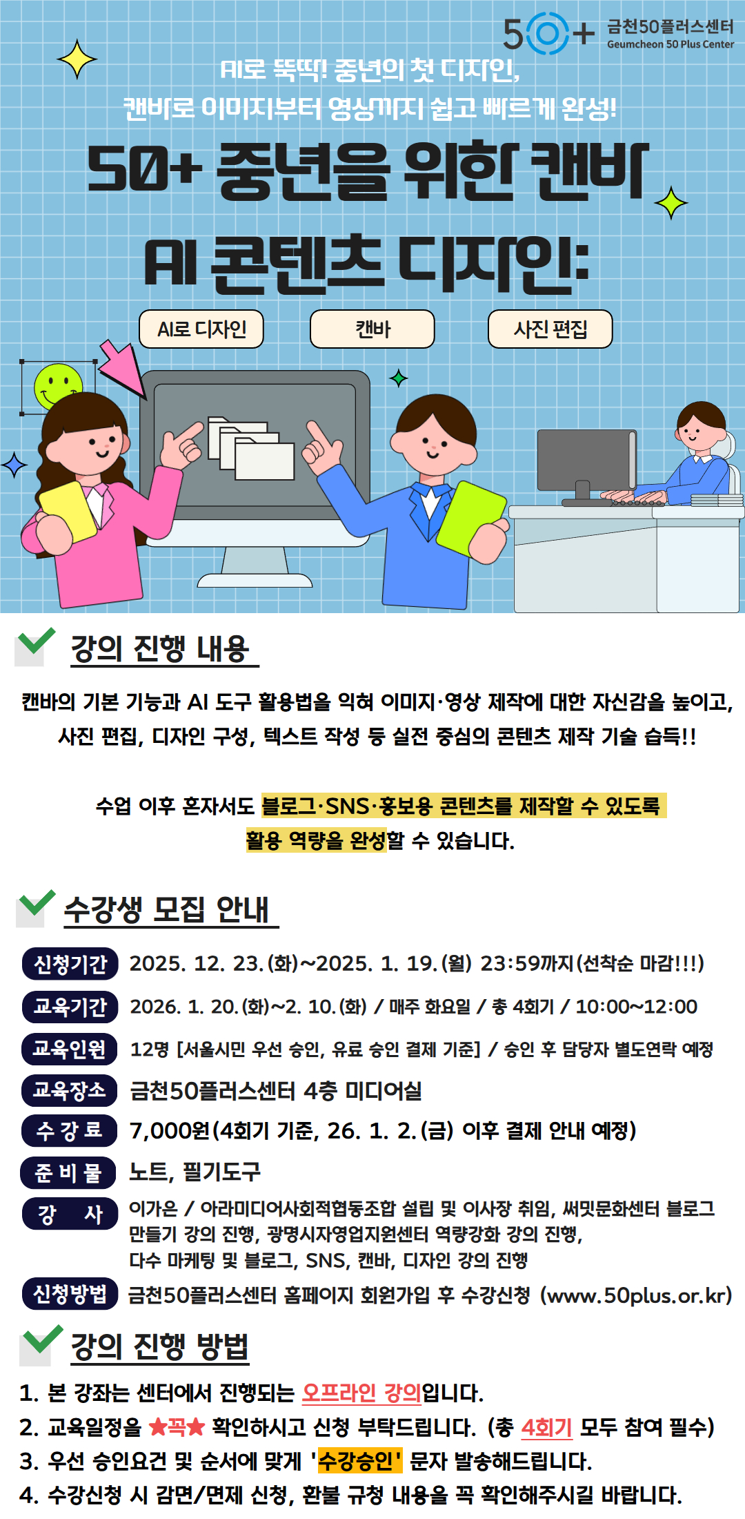 [금천][모음교실] 50+ 중년을 위한 캔바 AI 콘텐츠 디자인: 이미지부터 영상까지 한 번에마감 D-25