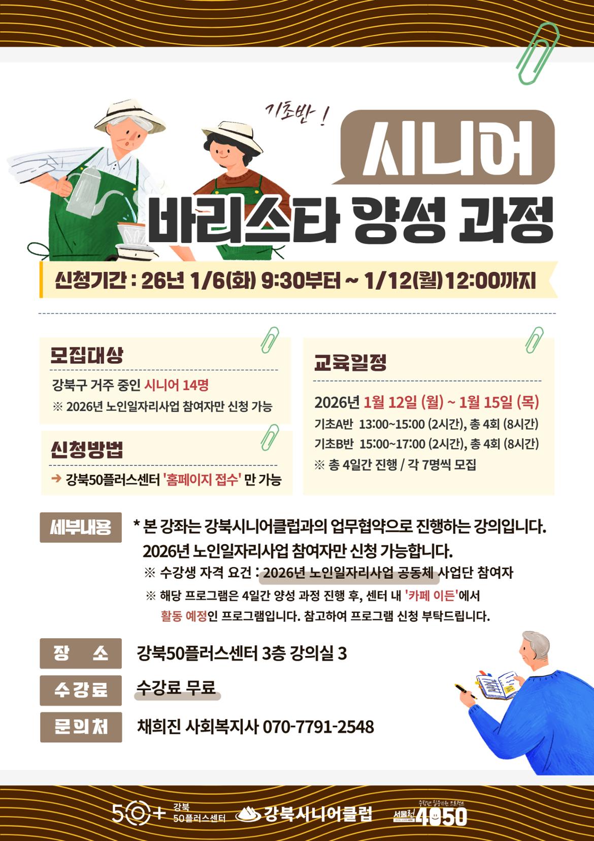 [강북][일활동] 시니어 바리스타 양성과정(기초A반)마감 D-3