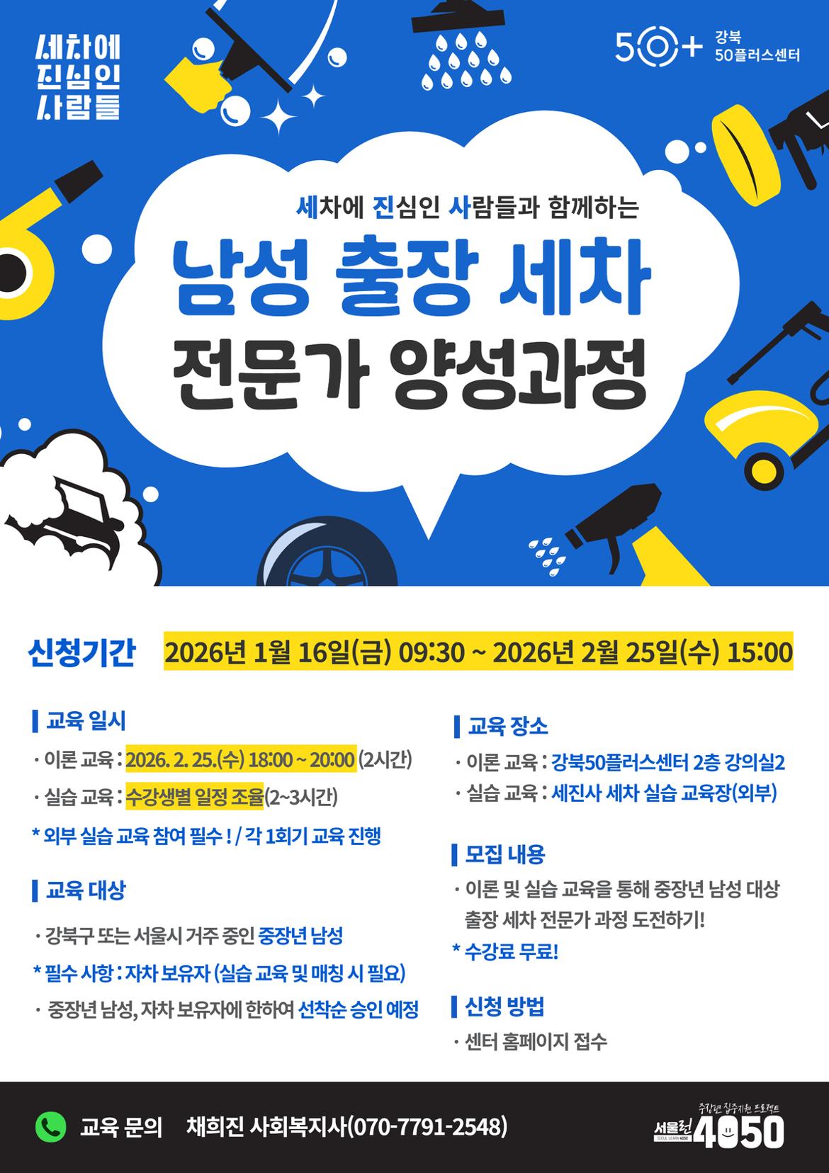 [강북][일활동] 남성 출장 세차 전문가 양성과정 (2기)마감 D-40