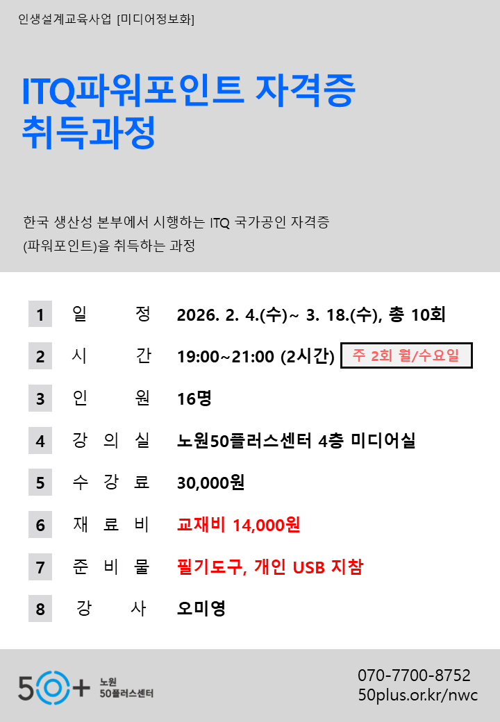 [노원][미디어]ITQ파워포인트 자격증 취득과정마감 D-18
