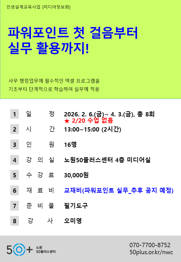[노원][미디어]파워포인트 첫 걸음부터 실무 활용까지!마감 D-20