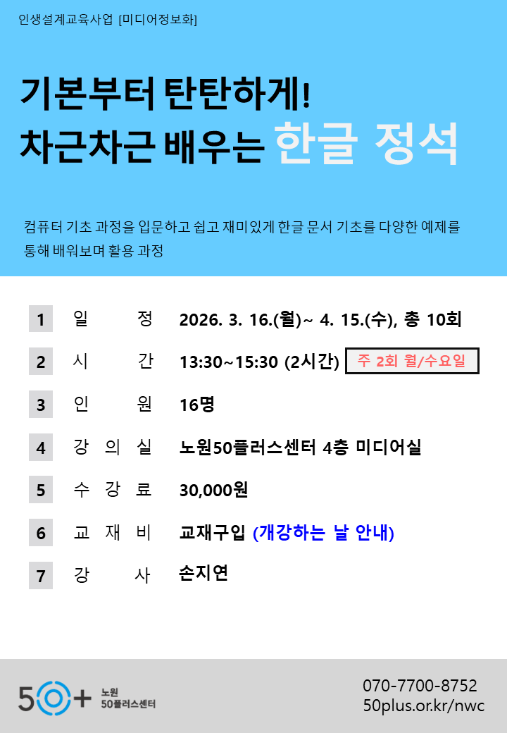 - 現노원50+ IT미디어정보화강사