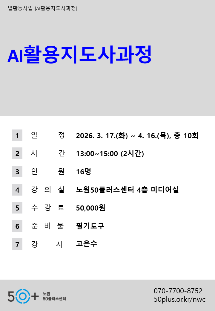 - 노원노인, 성동노인복지관 등 디지털 교육 강의