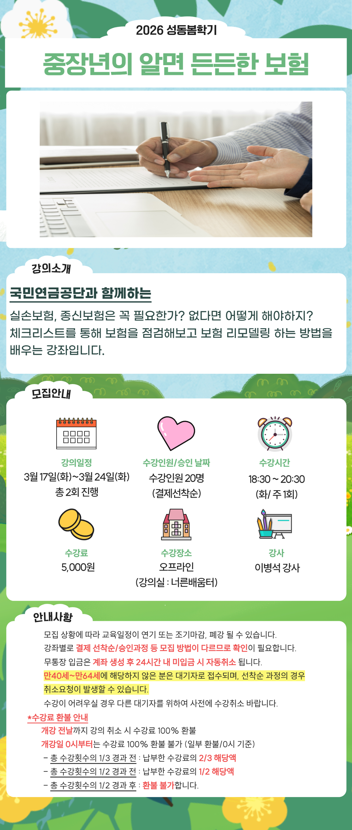 [성동]중장년의 알면 든든한 보험(화, 18:30-20:30)마감 D-19