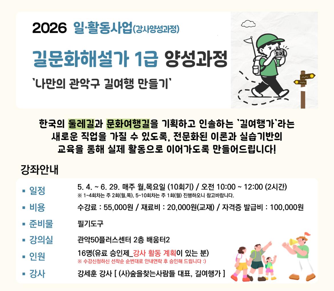 [관악]길문화해설가 1급 양성과정:나만에 길여행 만들기마감 D-27