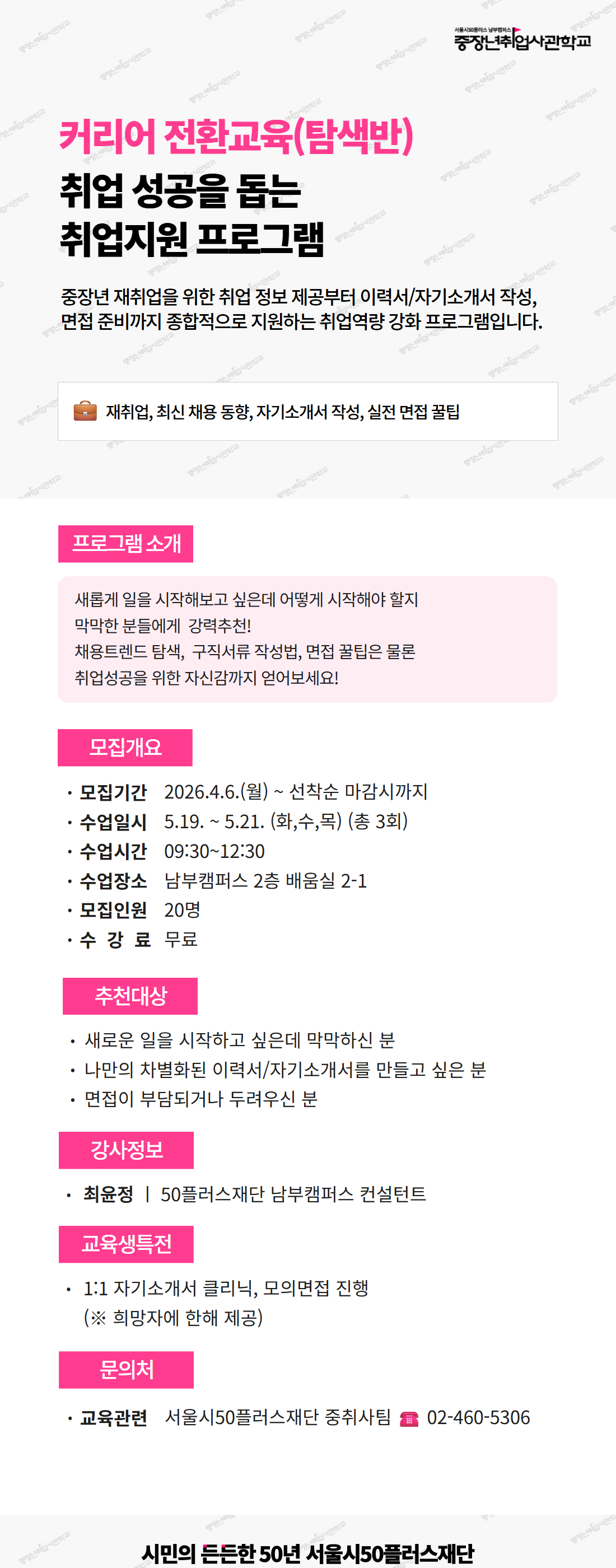 [남부][커리어전환(탐색형)] 취업 성공을 돕는 취업지원 프로그램(이력서, 면접 코칭) (5월)마감 D-41