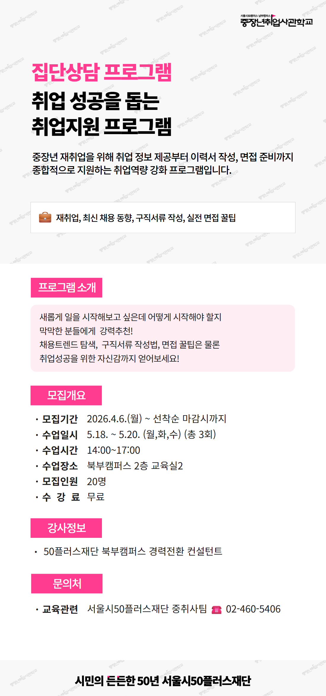[북부][커리어전환(탐색형)] 취업 성공을 돕는 취업지원 프로그램 (이력서, 면접 코칭)(5월)마감 D-40