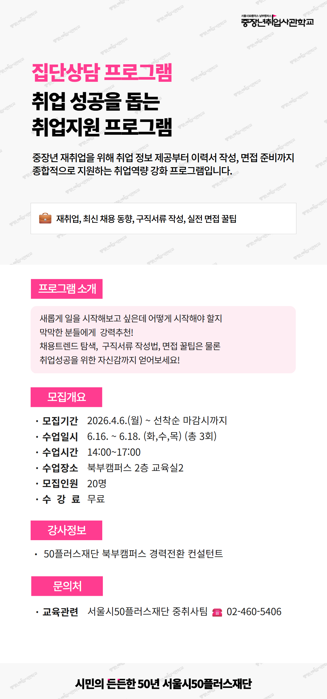 [북부][커리어전환(탐색형)] 취업 성공을 돕는 취업지원 프로그램 (이력서, 면접 코칭)(6월)마감 D-69