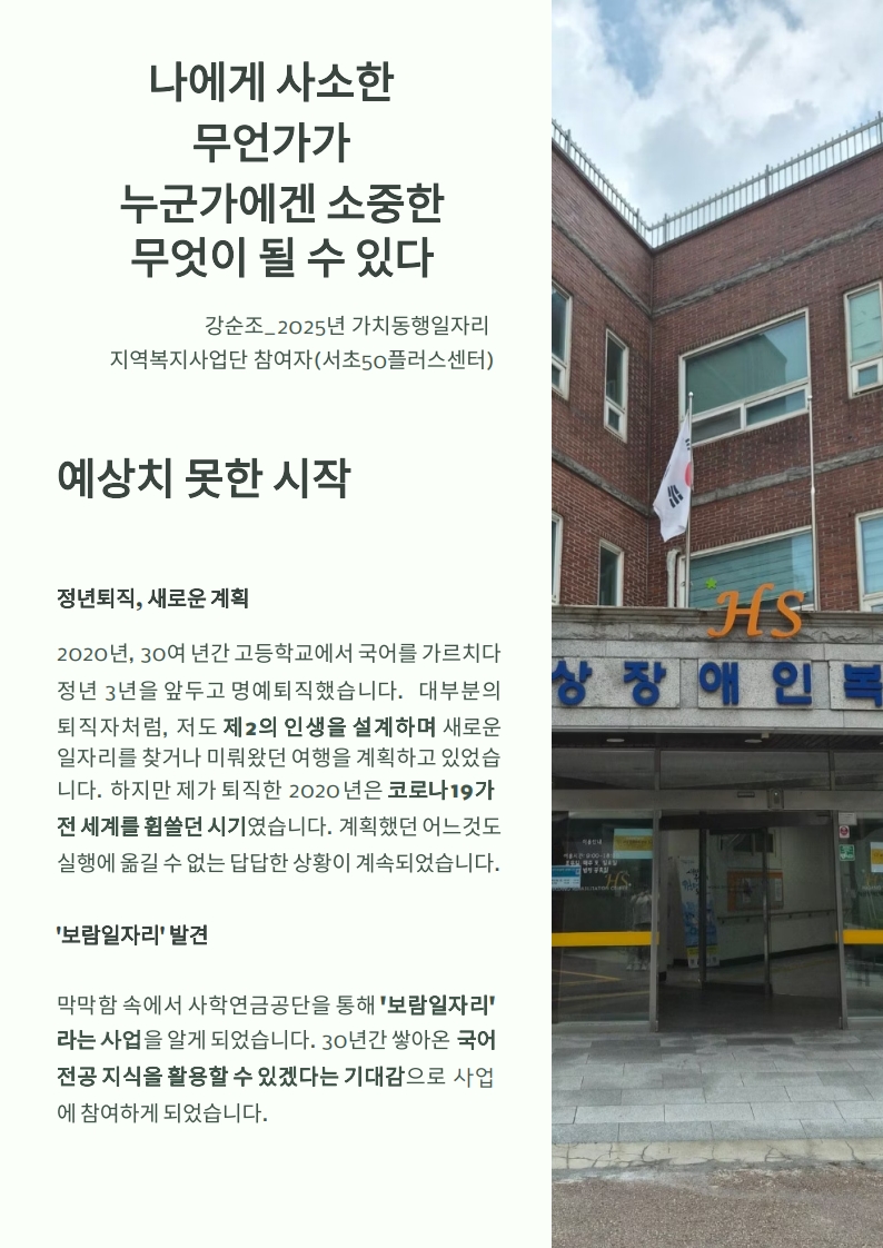 [가치동행 우수사례] 나에겐 사소한 무언가가 누군가에겐 소중한 무엇이 될 수 있다