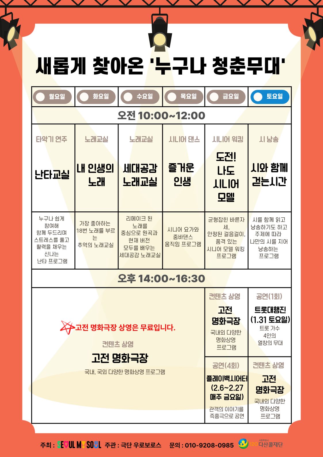 ▶ 체험형 교육 프로그램(월~토): 난타, 노래교실, 댄스, 시낭송
