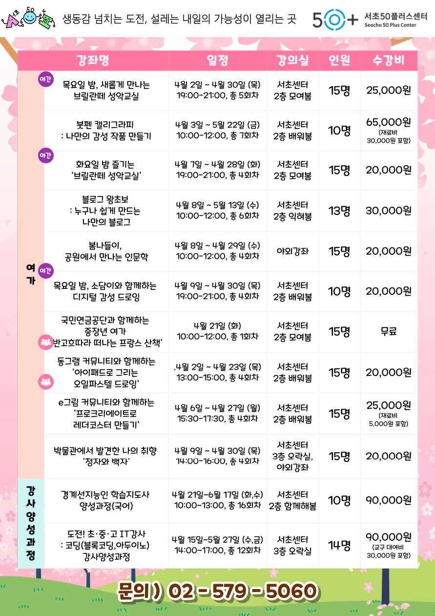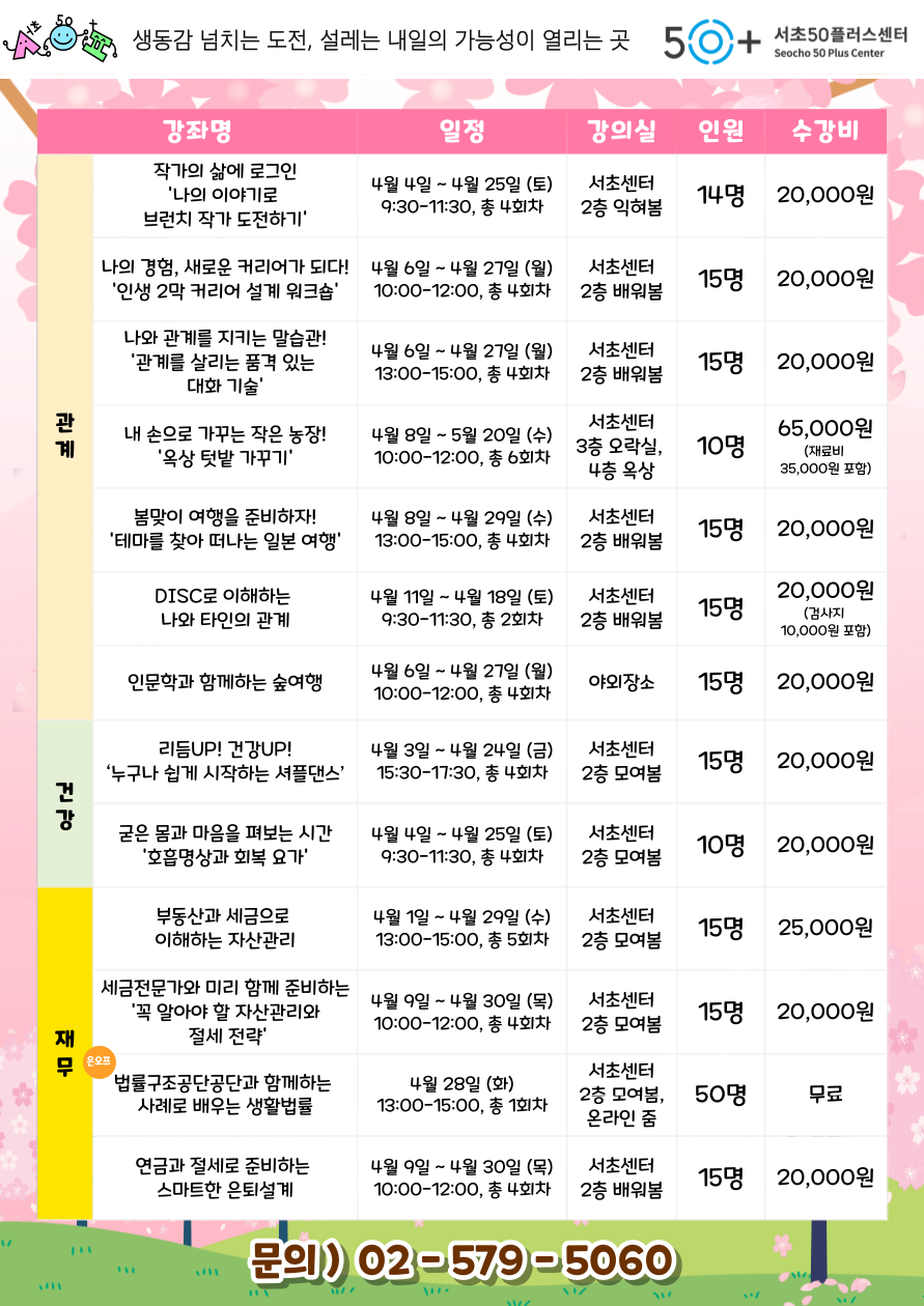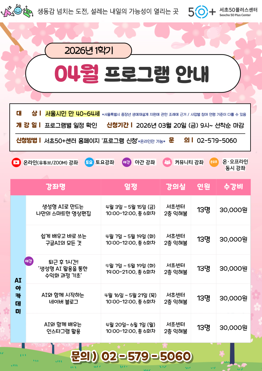 [서초]★2026년 04월 서초50플러스센터 프로그램 안내★