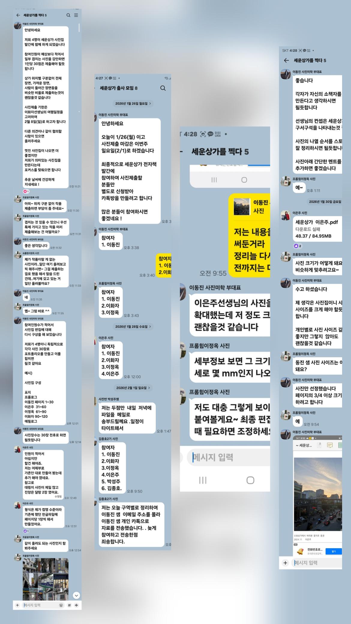 단톡방에서 각자 그동안 찍어온 사진으로 소책자를 만들듯 개인별로 작업하여 카톡에 올려 의견도 주고 받았으며,