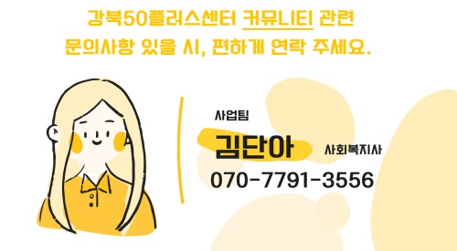 안녕하세요. 강북50플러스센터입니다. (●'◡'●)