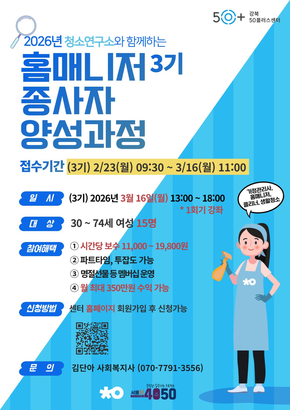 강북50플러스센터 생활연구소 일연계사업 일자리 청소연구소 청소연구소매니저 홈매니저