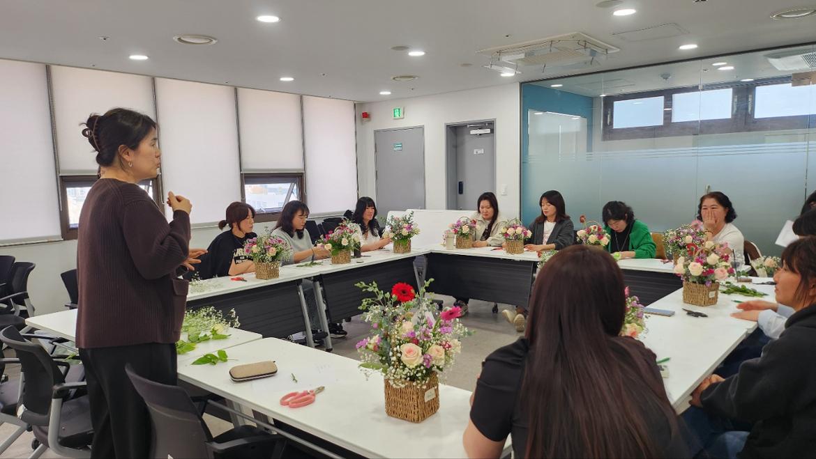 따뜻한 봄볕이 드는 날, 금천50플러스센터에 생화 향기가 가득했어요.