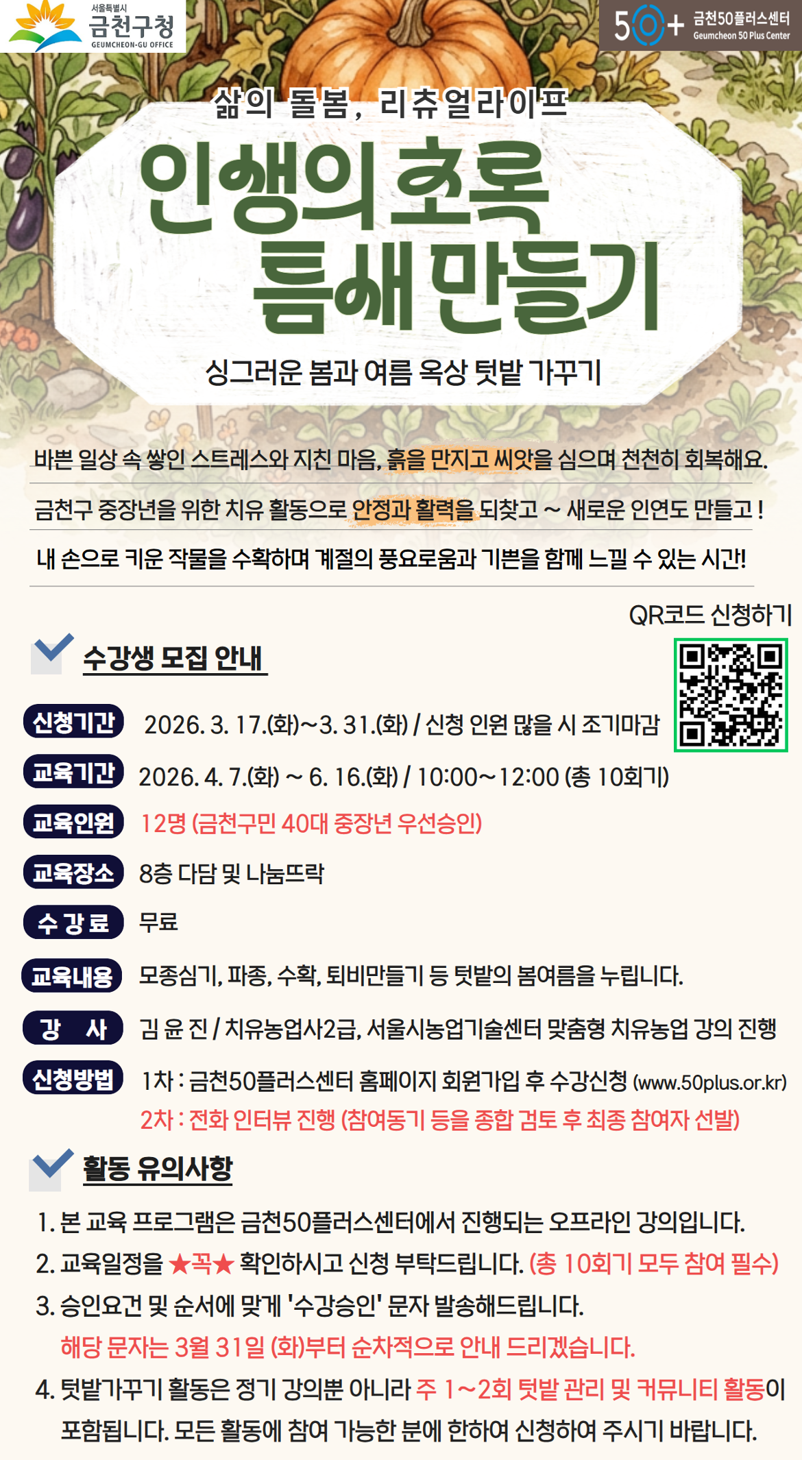 2026년 금천구 주민참여예산으로 운영되는 치유농업 프로그램으로,