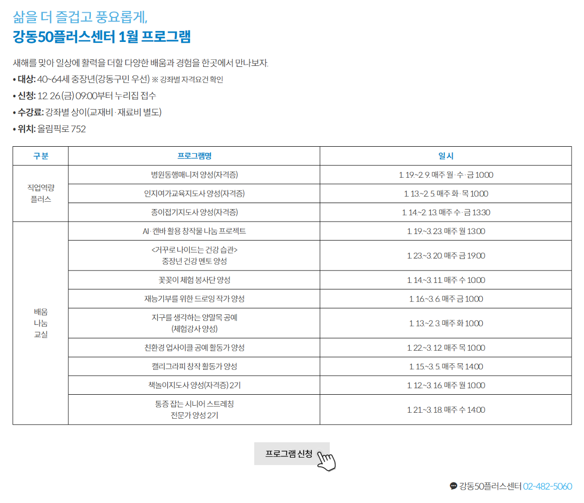 강동50플러스센터 서울특별시 강동구 올림픽로 752 (천호동) 사업자등록번호 : 212-83-00251