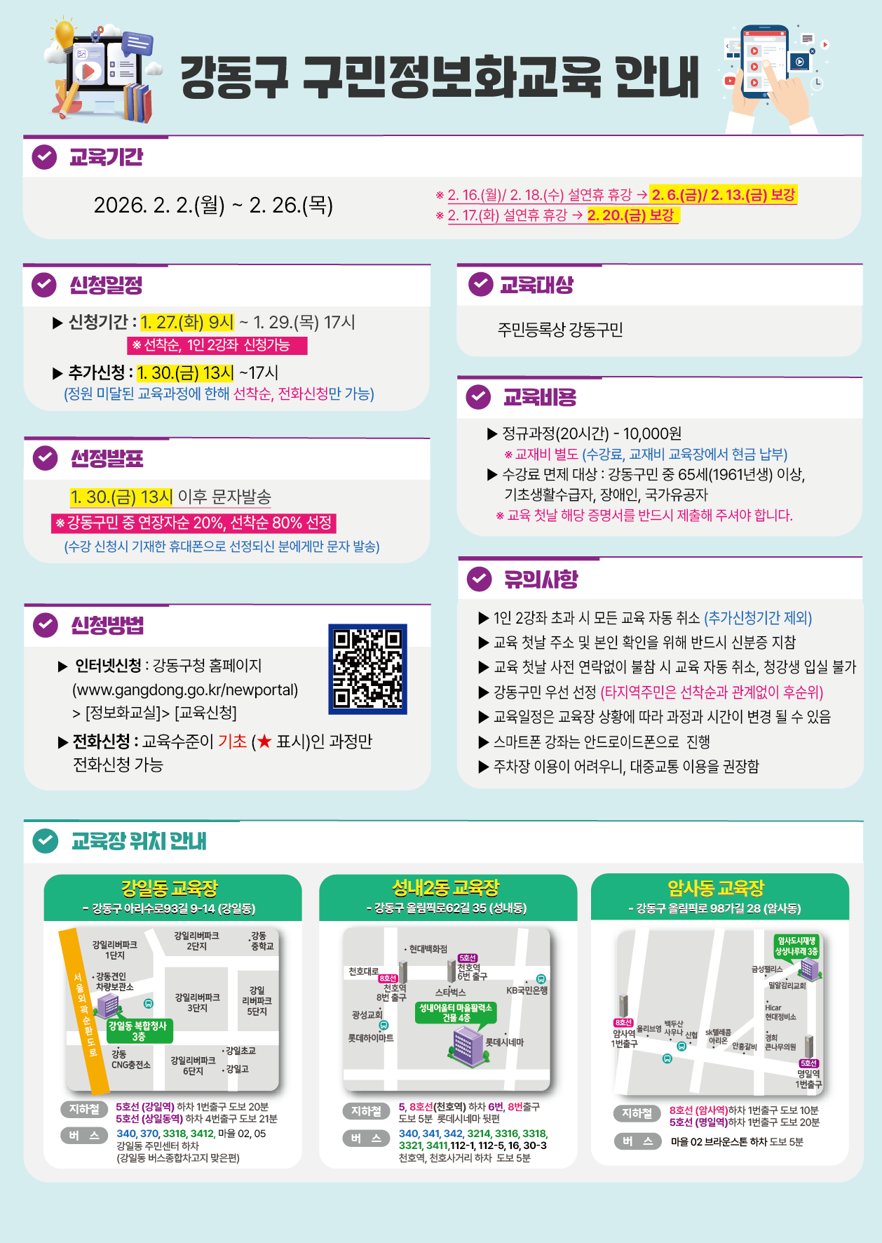 서울시 강동센터 | [강동구 구민정보화교육] 2026년 2월 구민정보화교육 안내