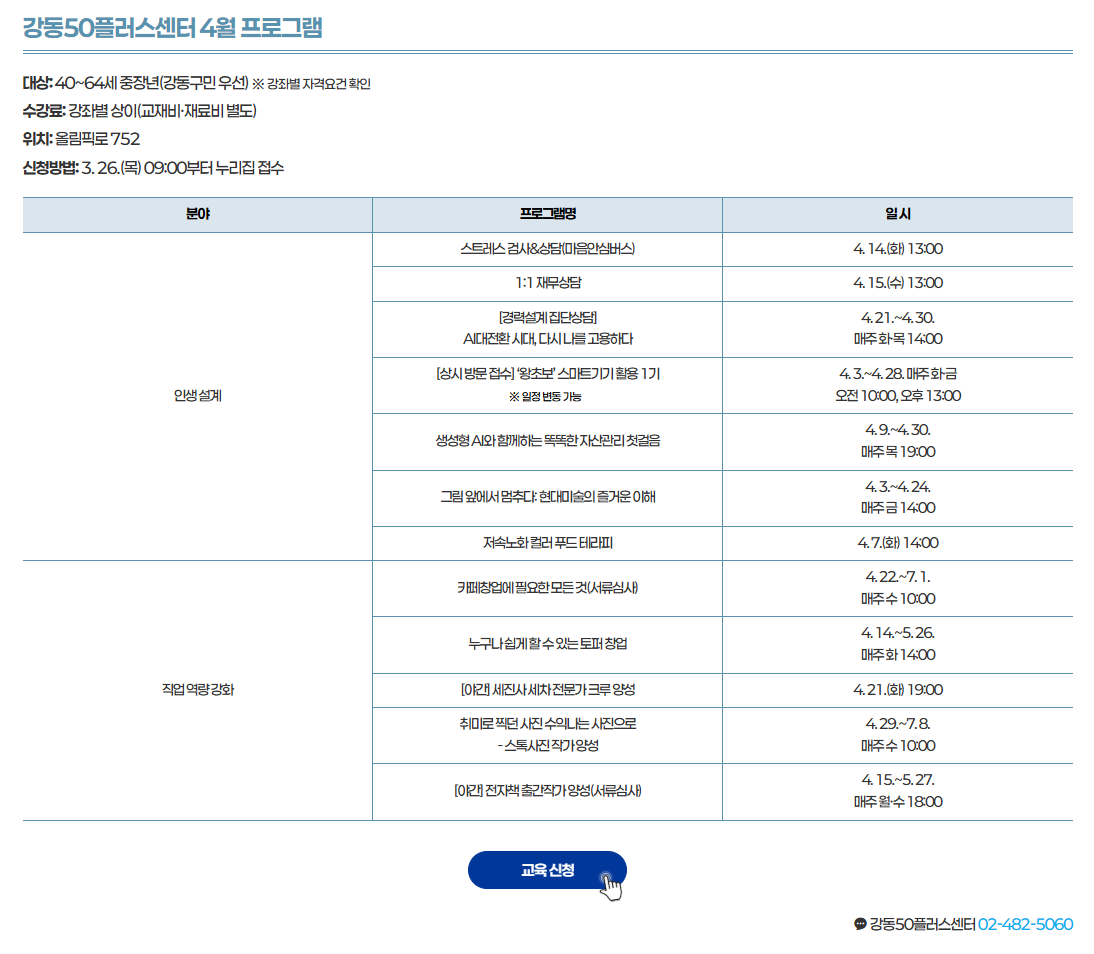 강동50플러스센터, 현장교육, 홍보자료