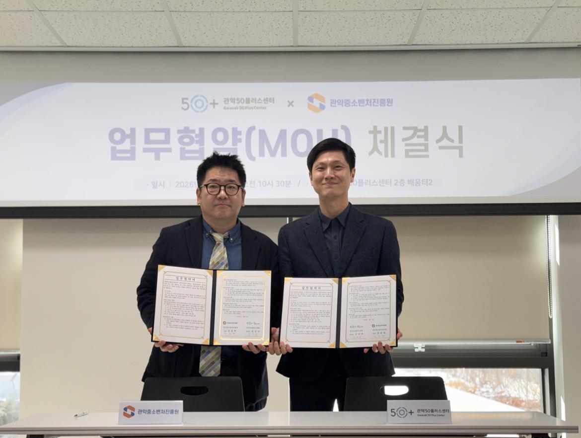 관악50플러스센터(센터장 김민석)와 관악중소벤처진흥원(원장 김준학)은 지난 2월 3일(화) 중장년 세대를 지원하기 위한 업무협약(MOU)을 체결했다.