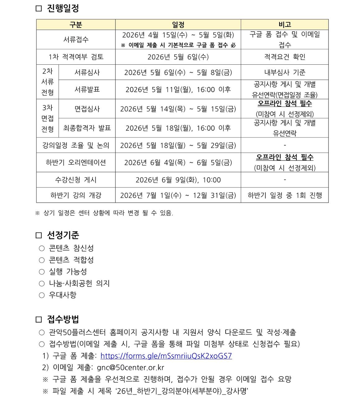 4. [26년 하반기  모집공고]는 5월 중 공지될 예정입니다.